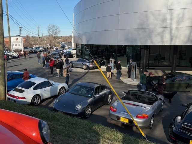 Shenandoah Region members of Porsche Club of America, joined by other local car enthusiasts, turned out on Saturday morning March 14 for a Porsches (plus more) and coffee gathering. It was a chilly but sunny day so temperatures rose quickly while folks roamed up and down admiring the line of cars parked in front of Porsche Charlottesville. Attendees were treated to a variety of excellent coffees to get our brains in gear and some delicious pastries to ride alongside.
